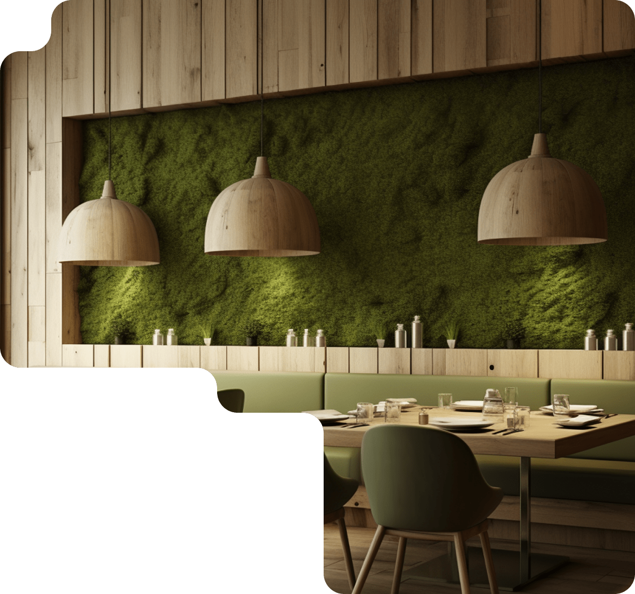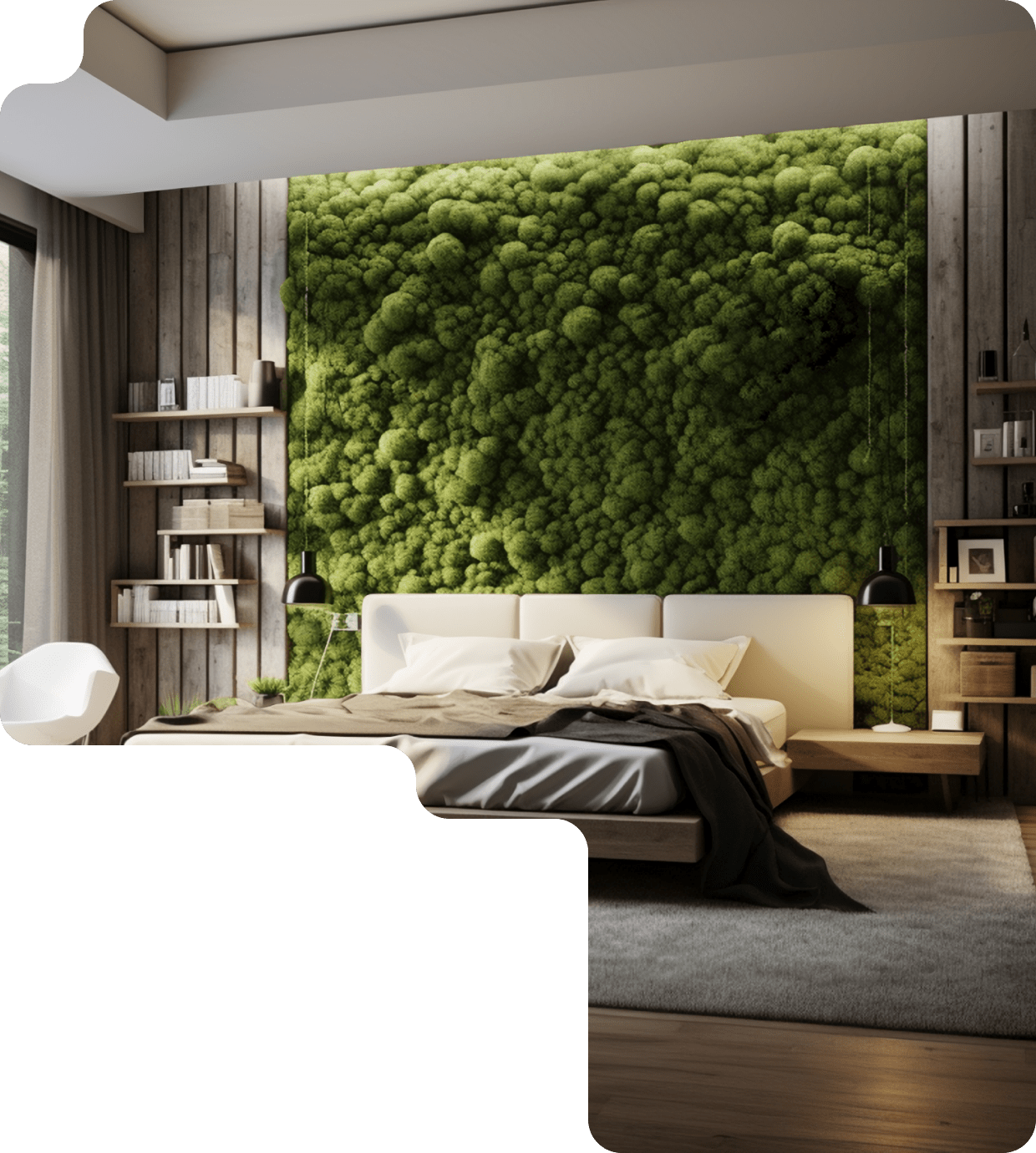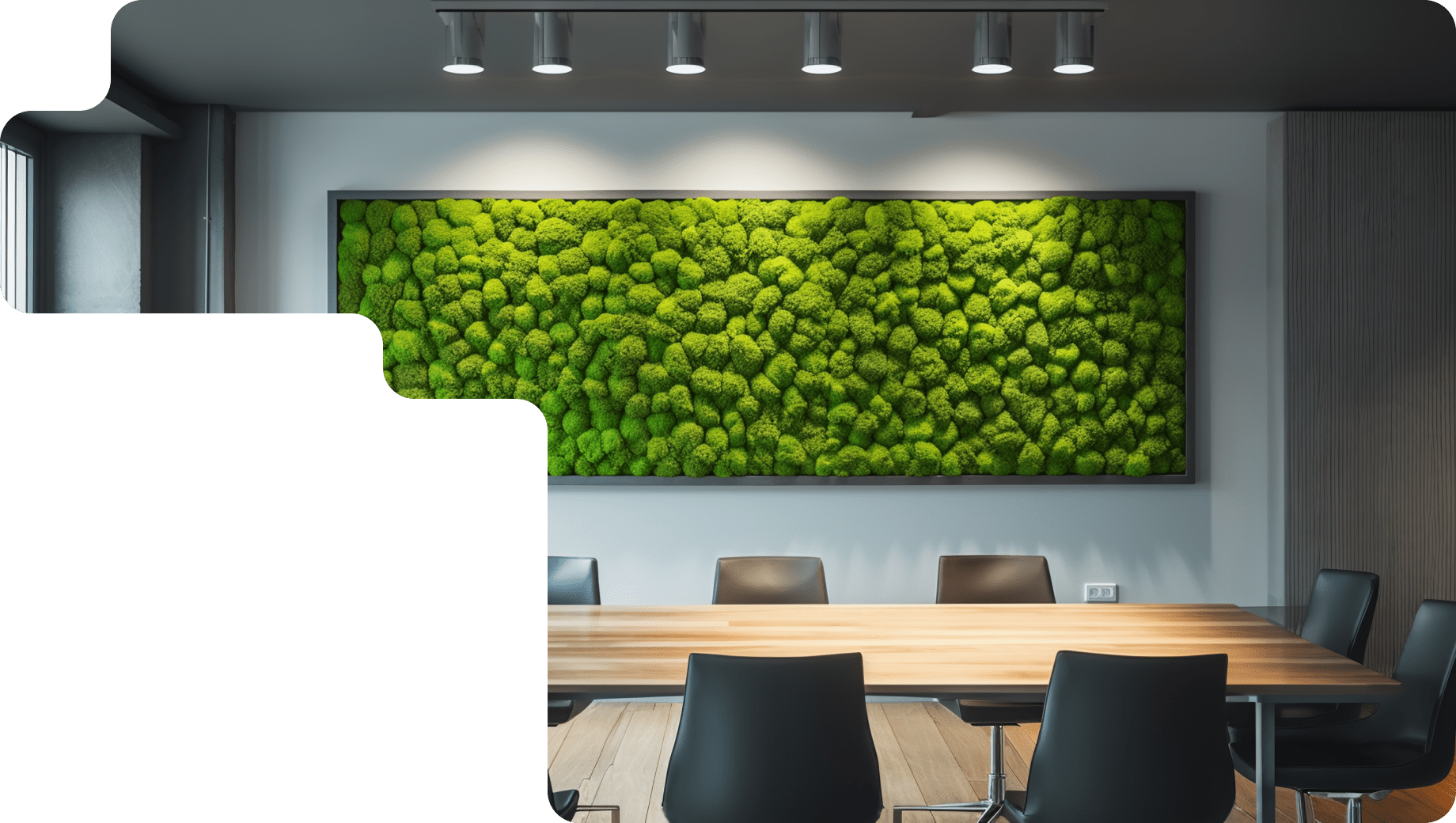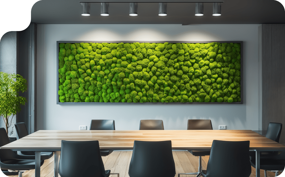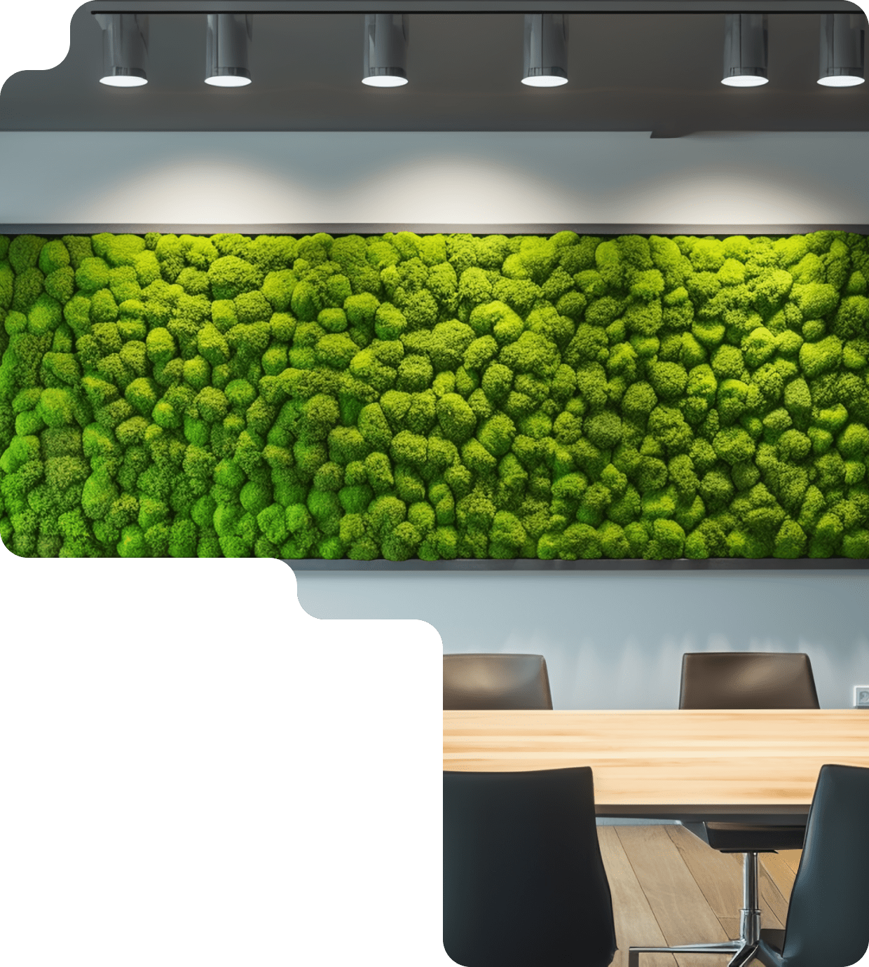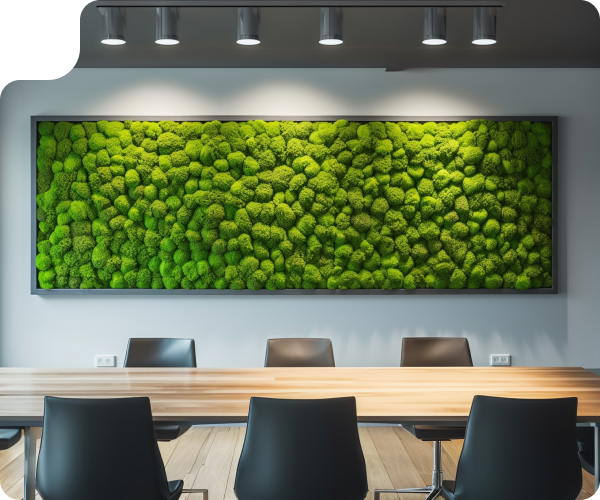 Композиции или целые стены из стабилизированного мха придают пространству более привлекательный вид. Такой элемент запоминается посетителям, обеспечивает эстетическое наслаждение. Пусть ваше пространство наполнится природной атмосферой и позволит клиентам наслаждаться не только вашими услугами, но и вашим интерьером.
