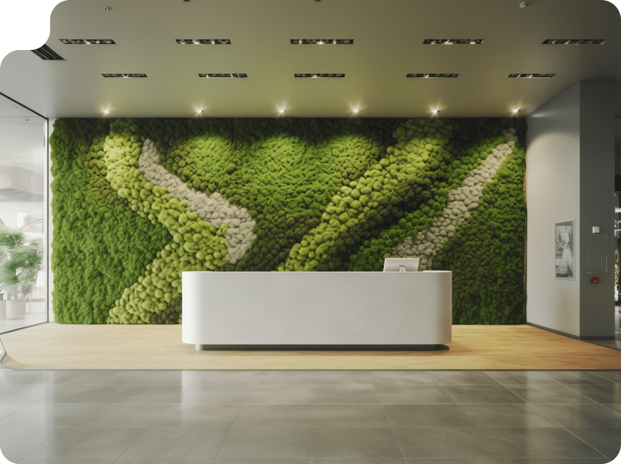 Создайте стену из мха в зоне ресепшн вашего фитнес-центра или другого healthy-пространства, добавьте премиальности своим услугам и сервису.